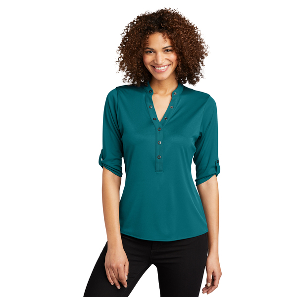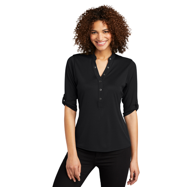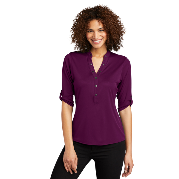 With its 3/4 sleeves and unique sleeve tabs, you'll have a crush on this innovative OGIO henley.