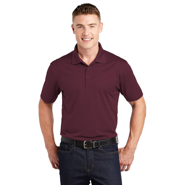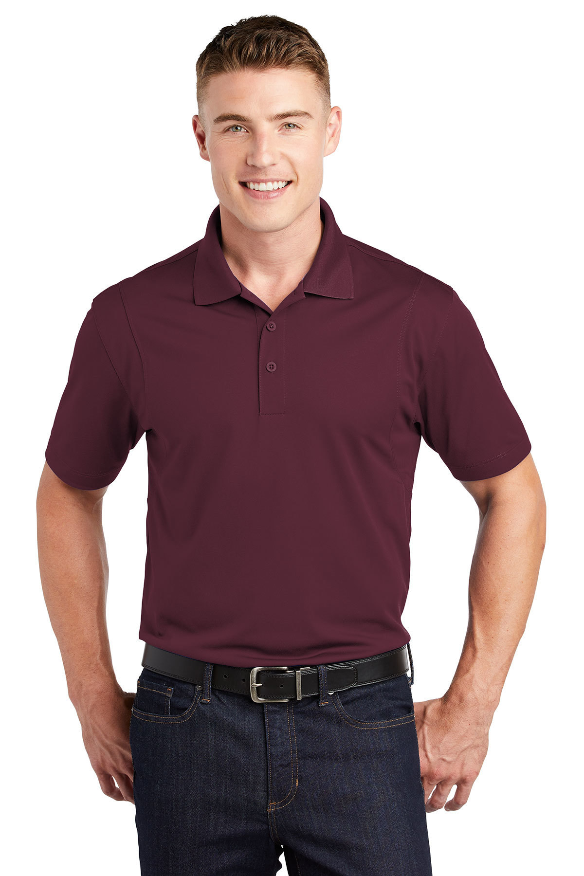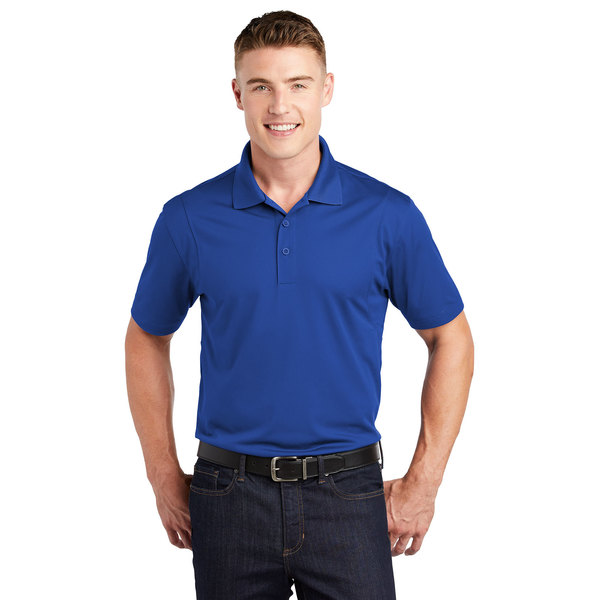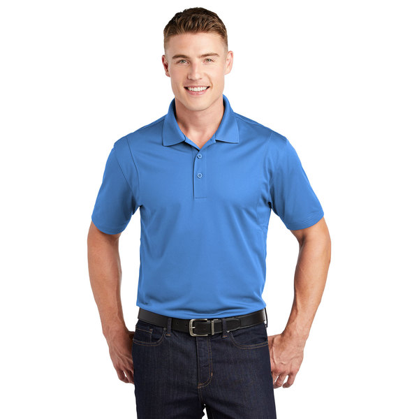 3.8-ounce, 100% polyester tricot Snag resistant Moisture-wicking Double-needle stitching throughout Tag-free label Taped neck Flat knit collar 3-button placket with dyed-to-match rubber buttons Set-in, open hem sleeves Armhole accent Side vents
